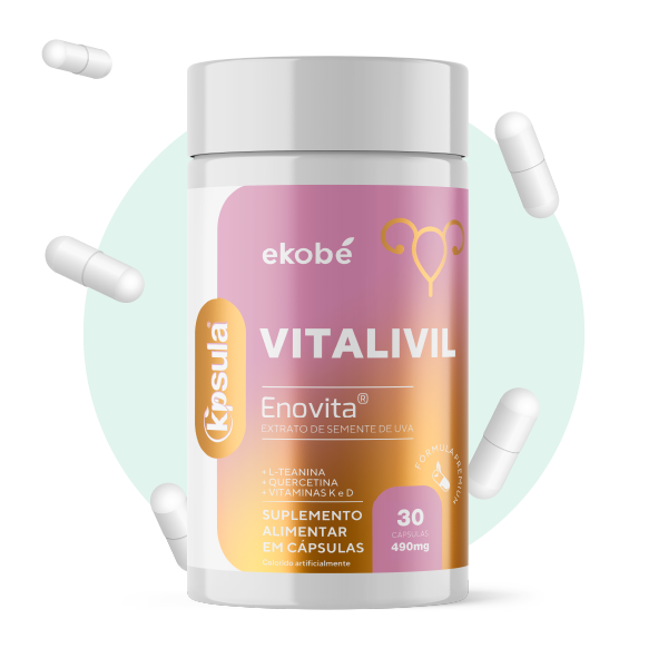 Formulado com extrato de semente de uva (Enovita), teanina, quercetina, vitamina D e K auxilia na coagulação do sangue, no funcionamento muscular e no funcionamento do sistema imune.